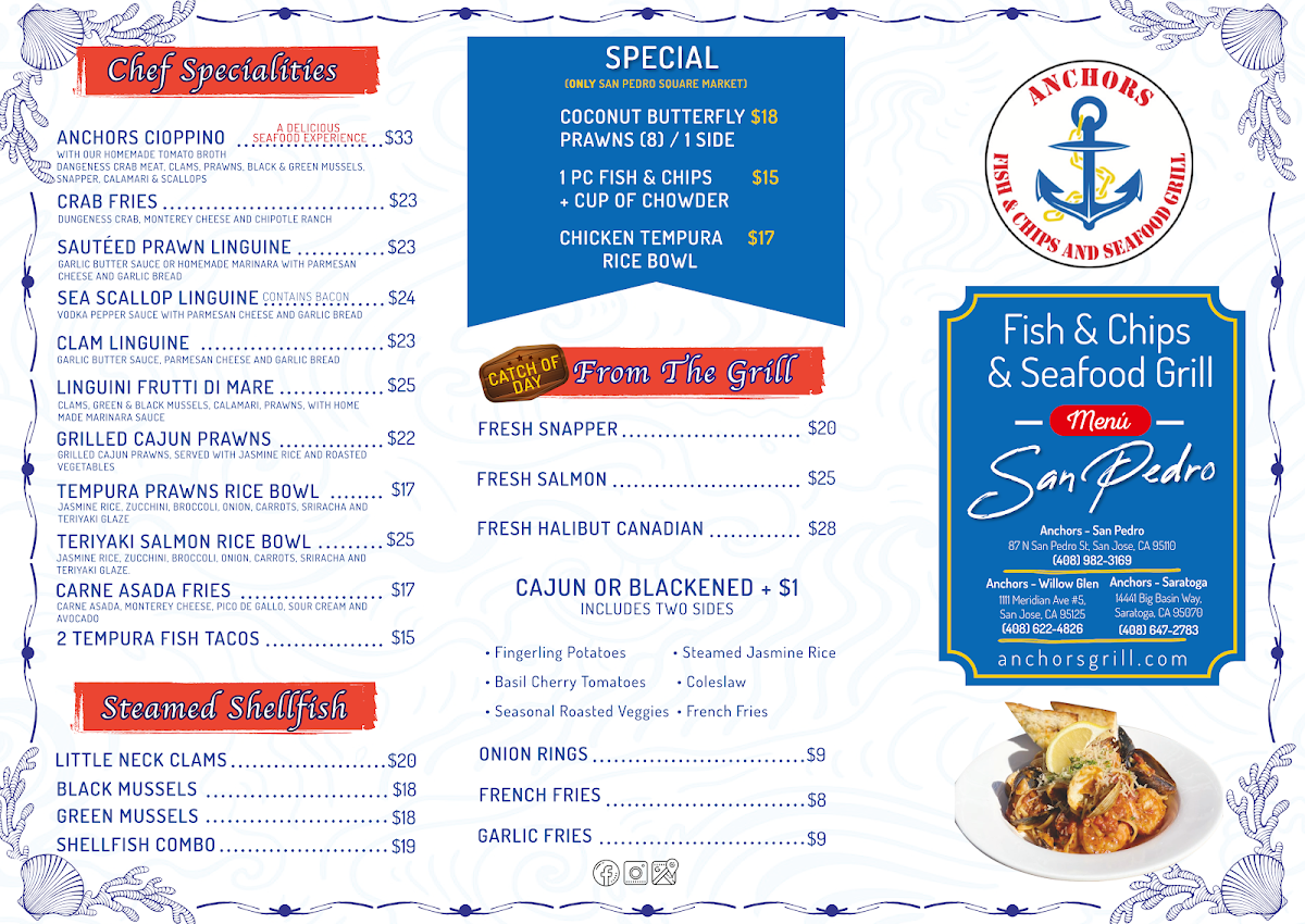 Welcome to Anchors Fish and Chips Seafood Grill, a hidden gem nestled in the heart of San Jose, California. This delightful eatery is located at 87 N San Pedro St, San Jose, CA 95110, and has quickly made a name for itself among locals and visitors alike. Known for its fresh seafood offerings and casual vibe, Anchors is the place where quality meets comfort food.